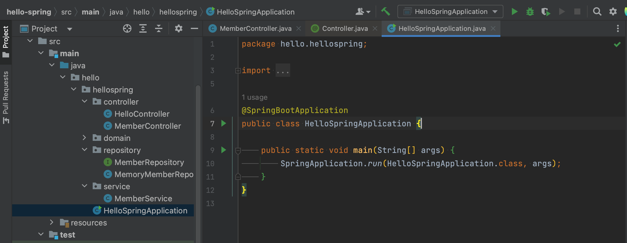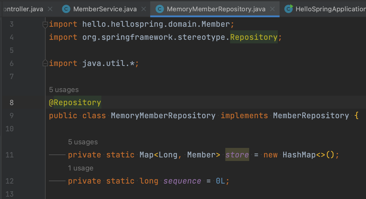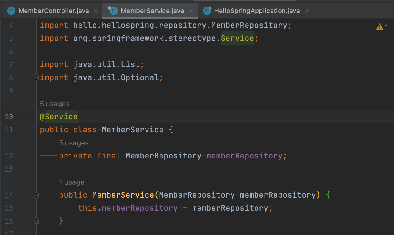 MemberController가 MemberService를 쓸 수 있게 해주고, MemberService가 MemberRepository를 쓸 수 있게 됨