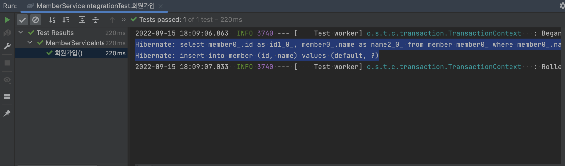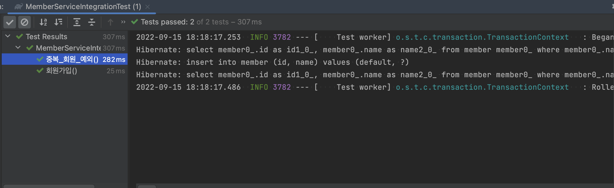 스프링 통합테스트 실행
