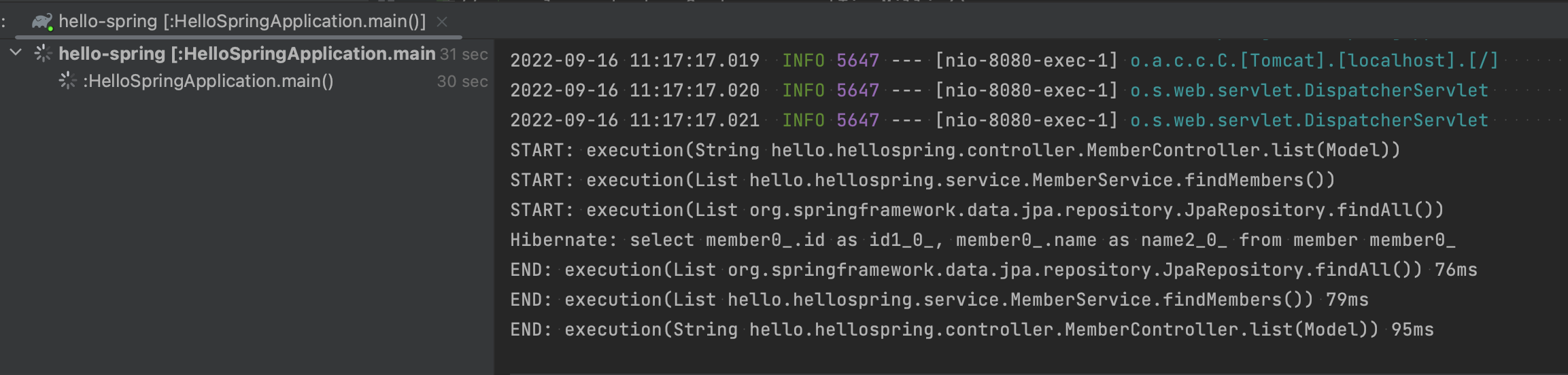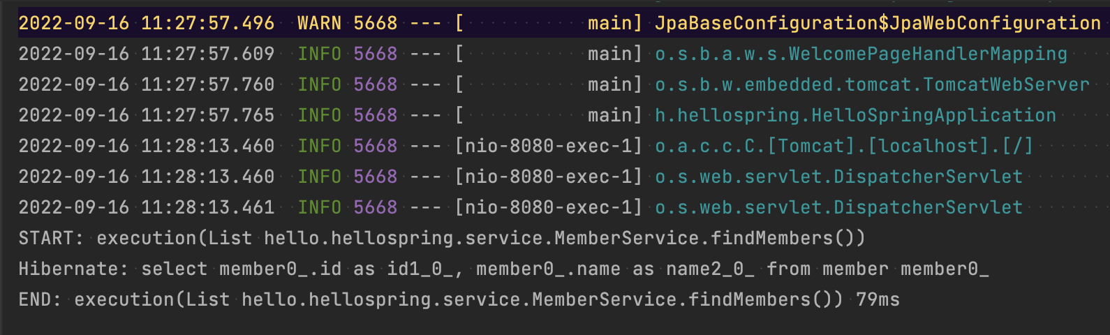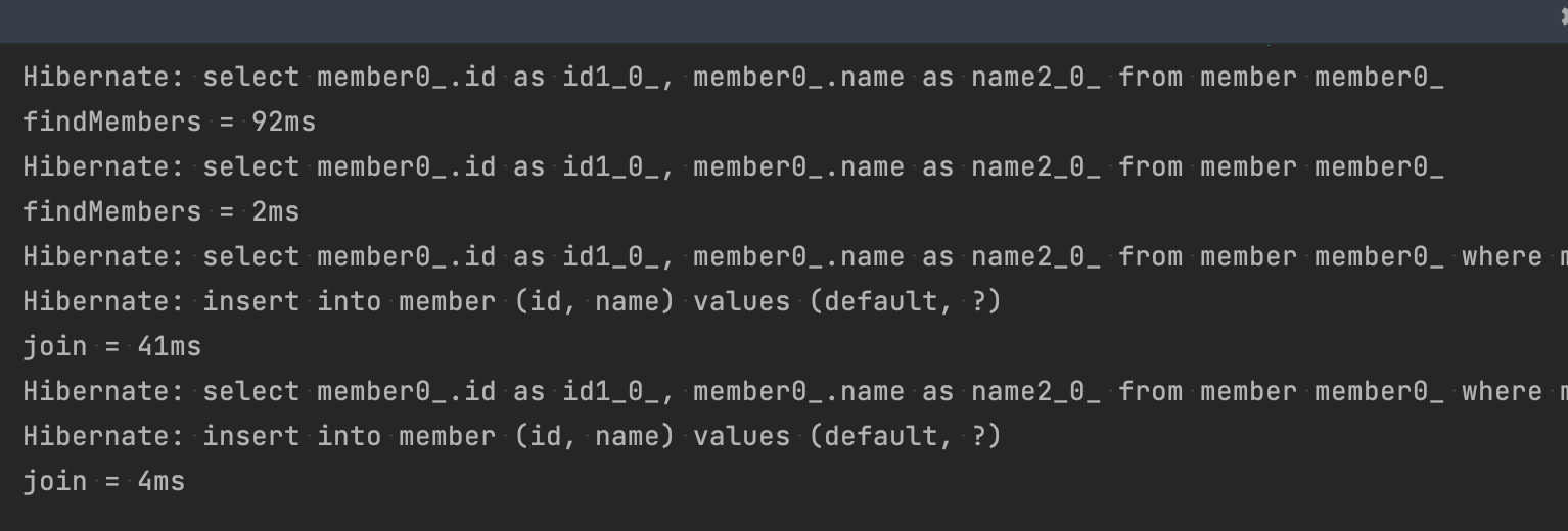 처음 동작 시 더 오래 걸림 (클래스 메타 데이터 로딩 등등...)