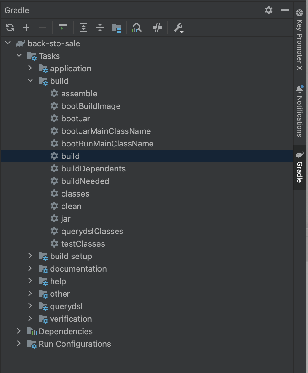 Tasks > build > build 실행