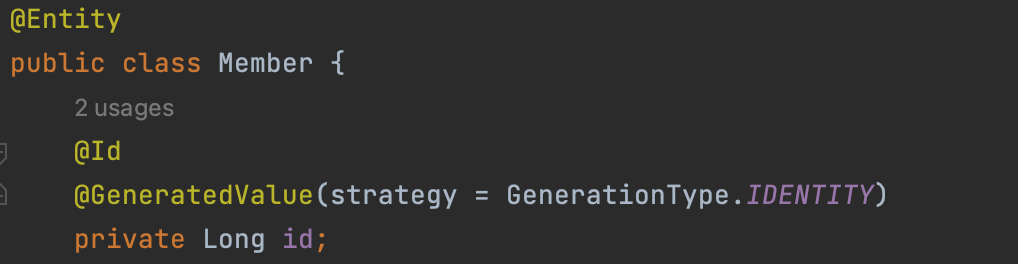 entity 에서도 @GeneratedValue 어노테이션이 설정되어 있어야 한다.