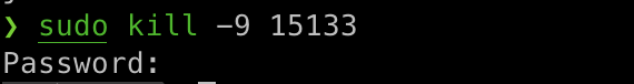 의 결과로 나온 현재 Port로 실행중인 PID 번호 를 kill 해준다.