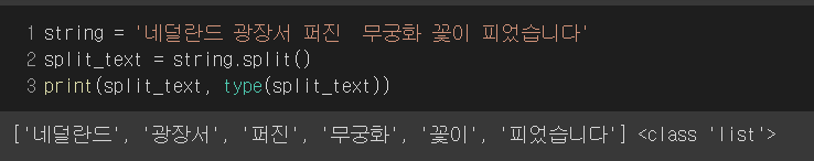 string = '네덜란드 광장서 퍼진 무궁화 꽃이 피었습니다'