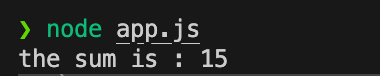console.log(`the sum is : ${num1 + num2}`);