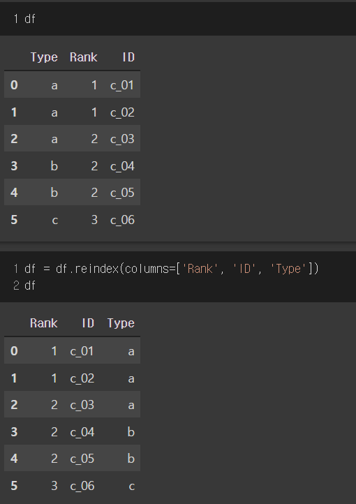 df = df.reindex(columns=['Rank', 'ID', 'Type'])