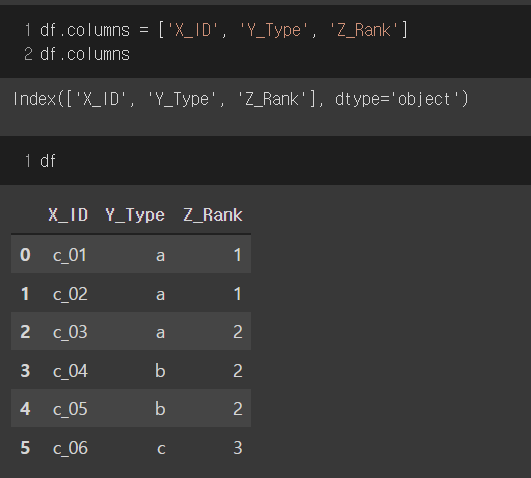 방법1. df.columns에 변경할 column 명들을 기존 column 순서에 맞게 list로 대입