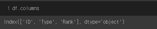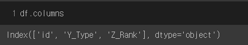현재 df 의 전체 column명 확인