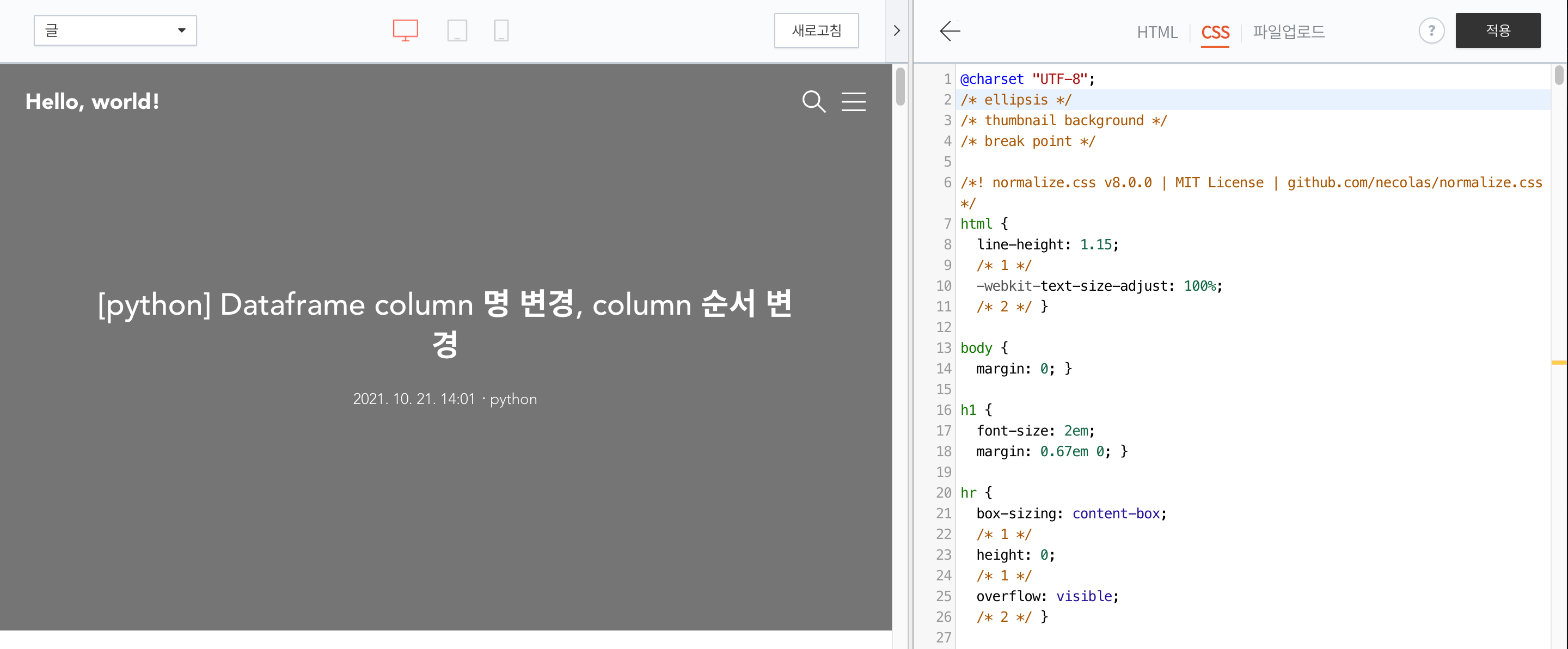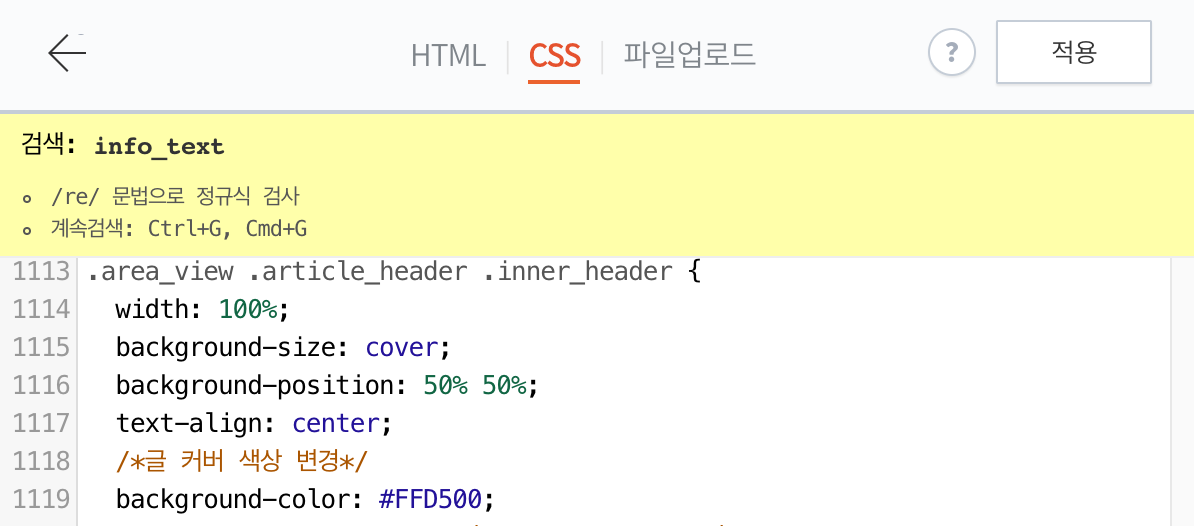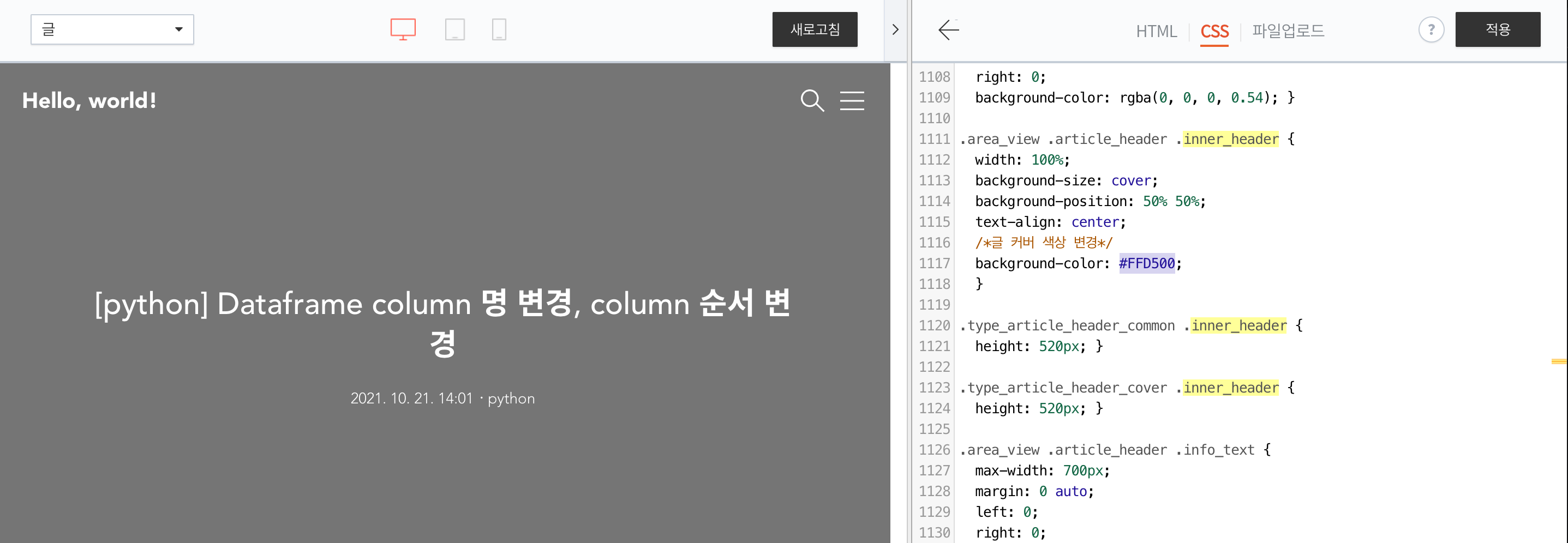역시 색을 변경한 후 적용하고 새로고침하면 변경 결과를 확인할 수 있다.