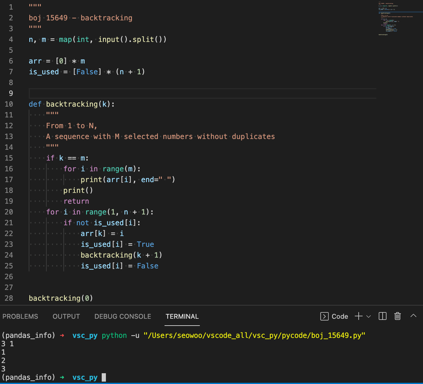 print(backtracking(0))을 실행하면 backtracking() 함수의 리턴 값을 출력해준다.