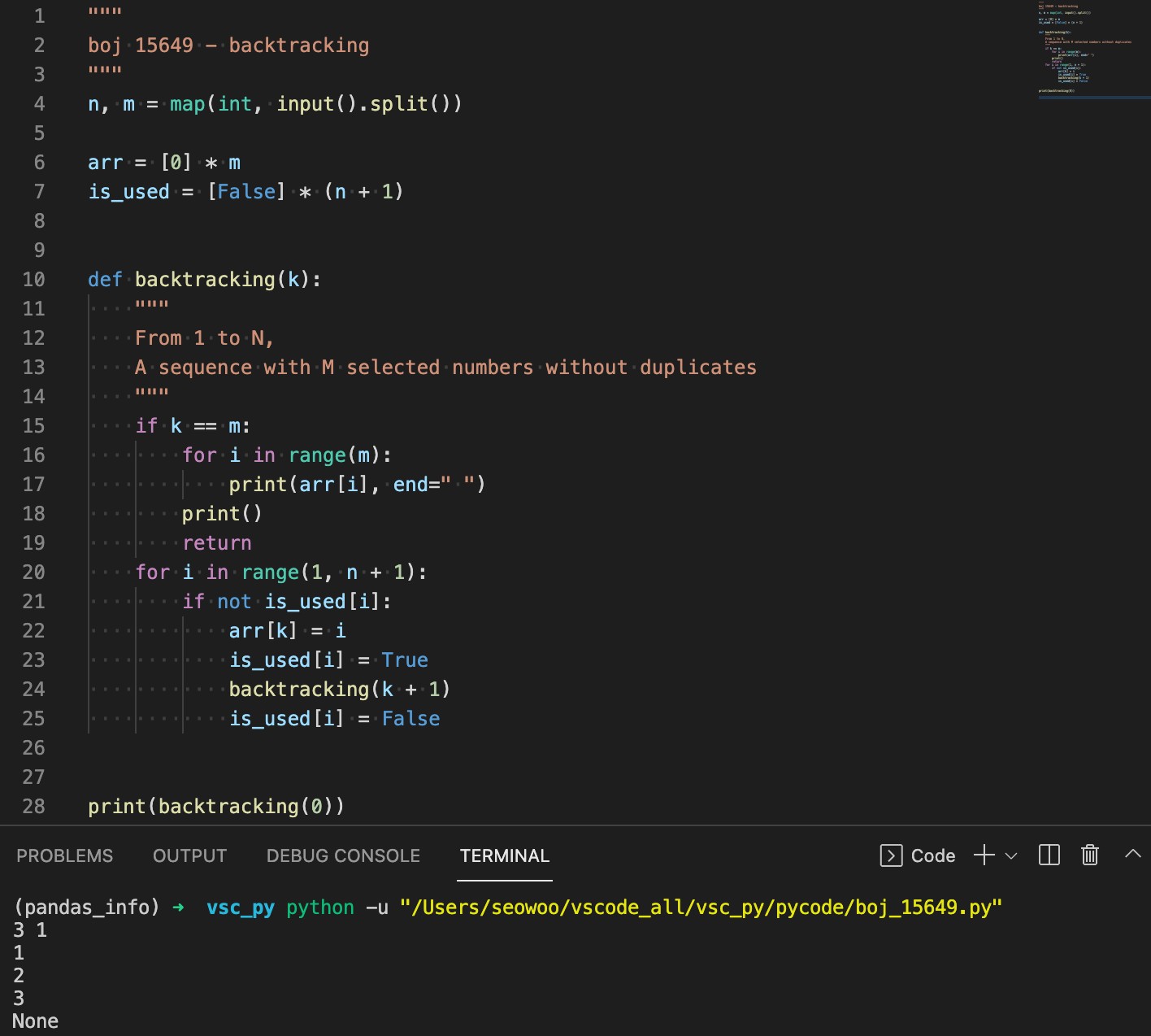 그런데 backtracking() 함수에 리턴 값이 없기 때문에 print(backtracking())을 했을 때 None이 출력된 것이다.