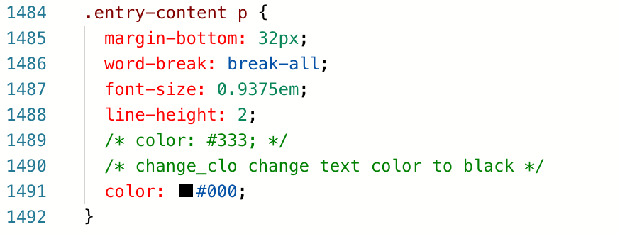 CSS로 가서 "entry-content p" 찾기