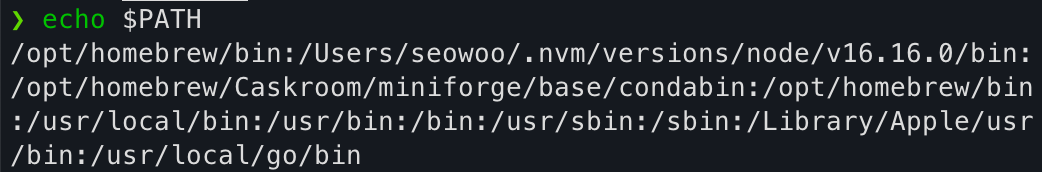 echo $PATH 를 입력해 "node -v" command 가 찾는 위치를 확인한다.
