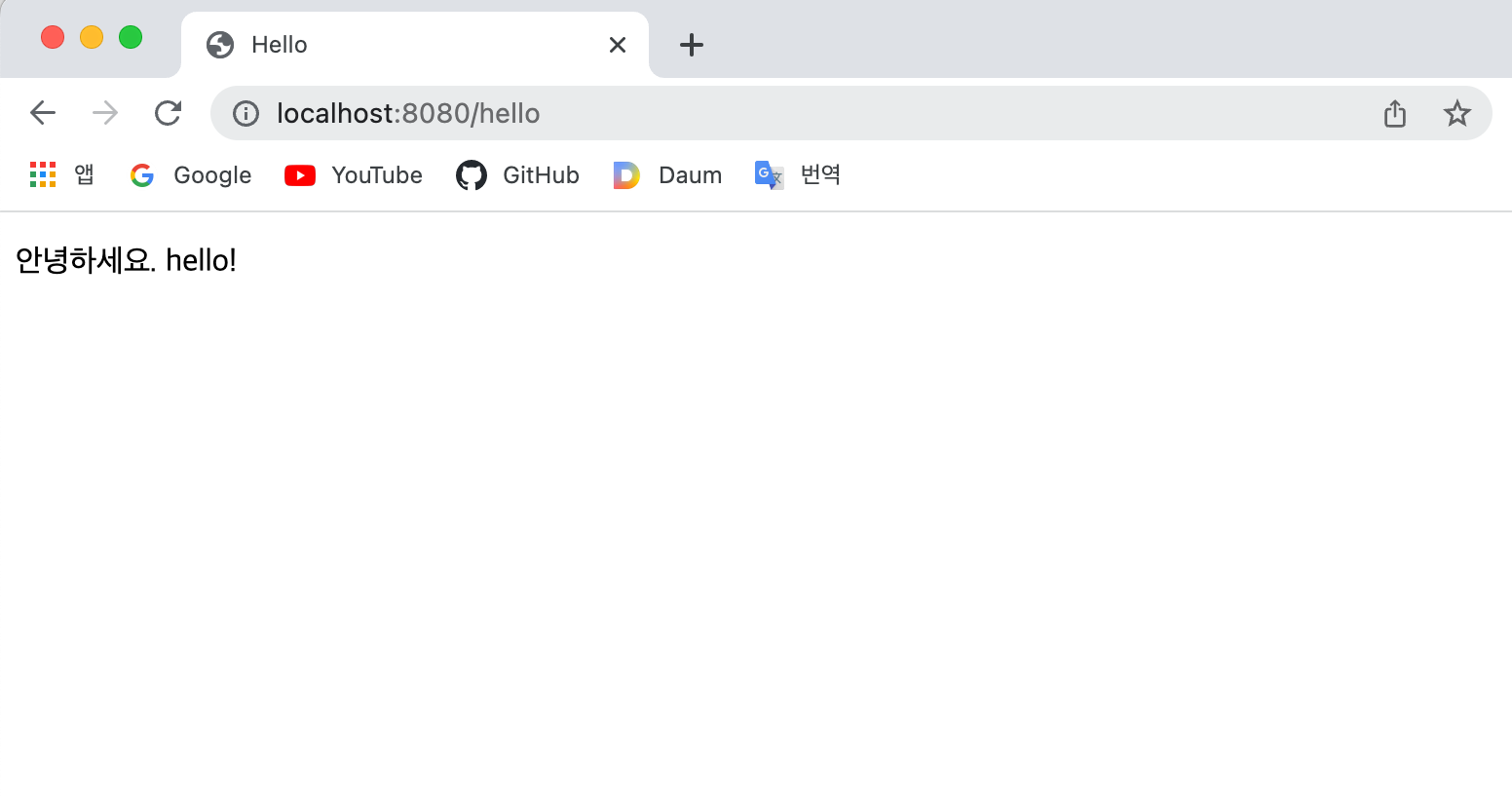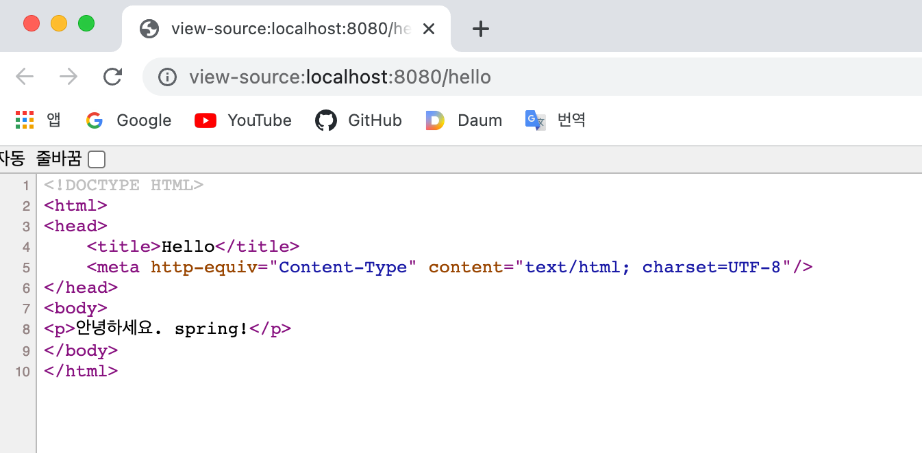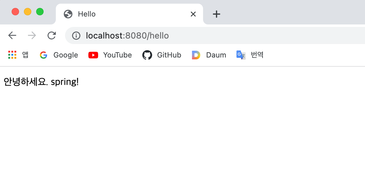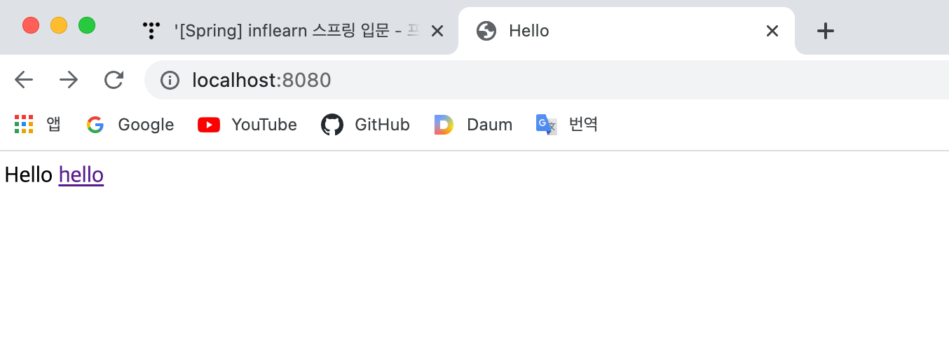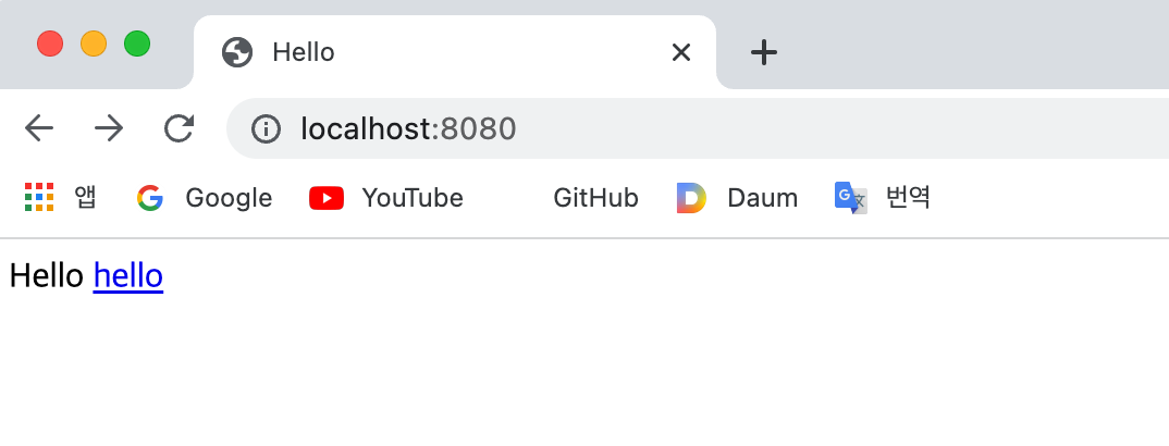 localhost:8080/hello 접속