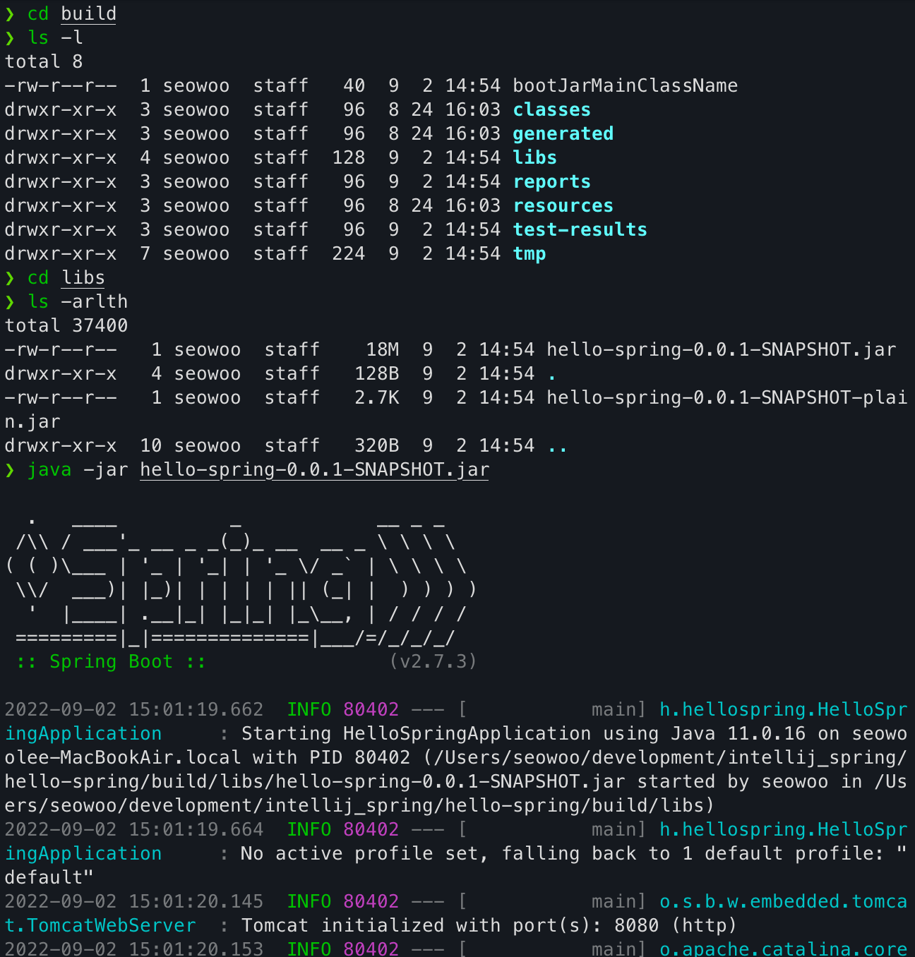 java -jar hello-spring-0.0.1-SNAPSHOT.jar // 자바 실행