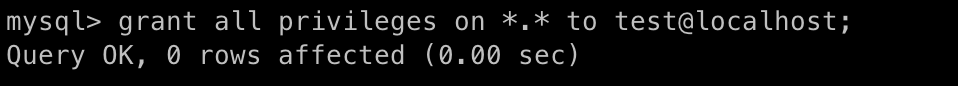 grant all privileges on *.* to test@localhost;