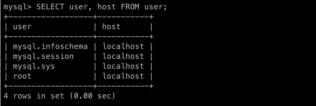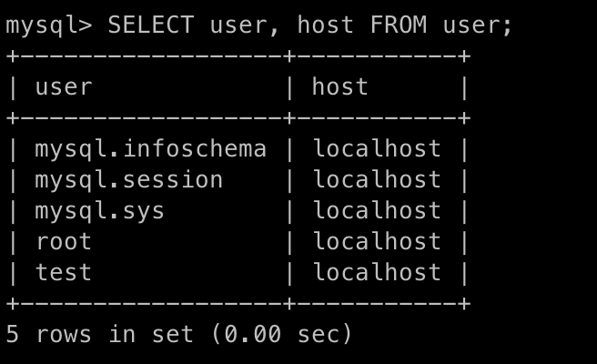 SELECT user, host FROM user;
