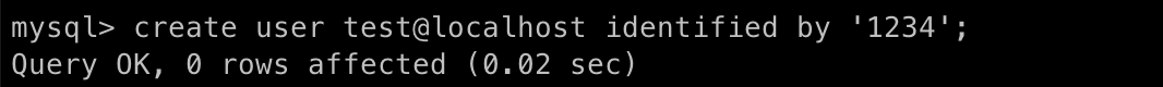 create user test@localhost identified by '1234';